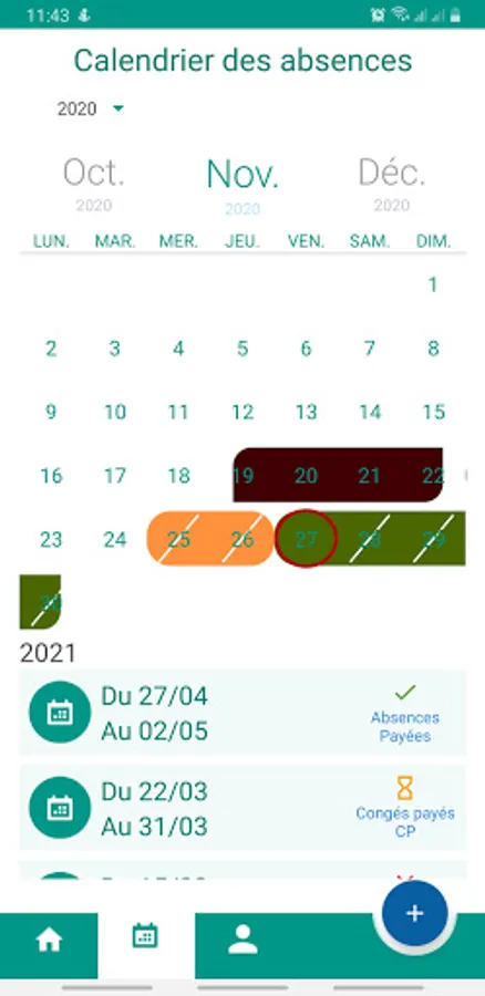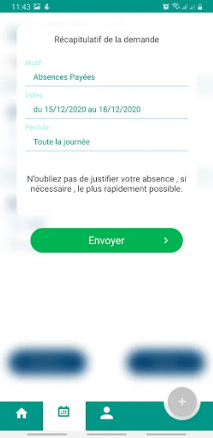 With AGconnect, the employee manages his requests for work absences with his Smartphone: