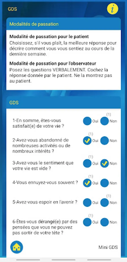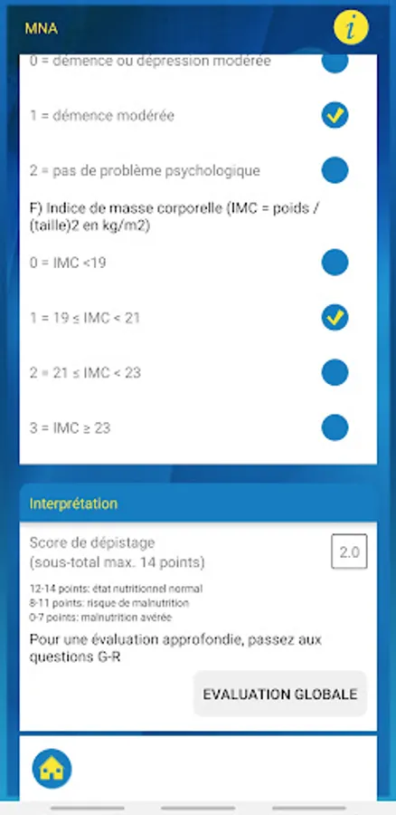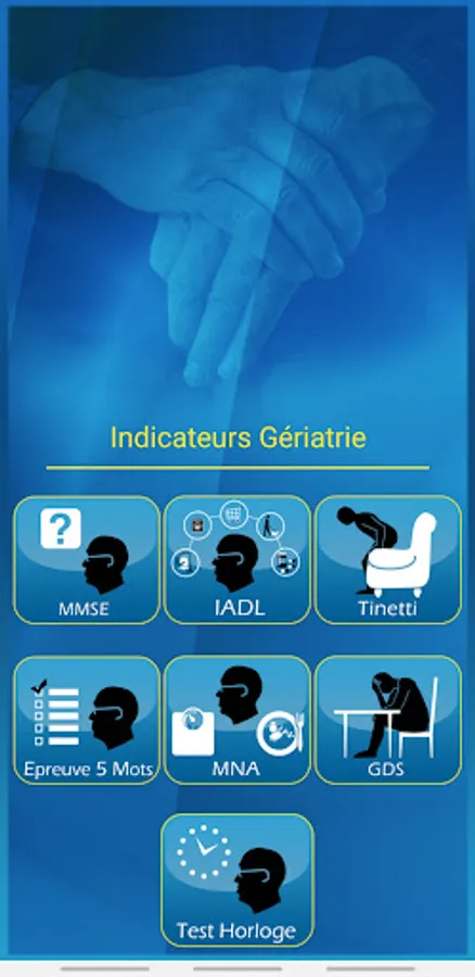 iGeriatrie is a set of tools contributing to standardized geriatric assessment. It is intended for general practitioners, geriatricians, occupational therapists, wishing to screen for cognitive disorders (MMS, clock test), depression (GDS), the risk of falling (Tinetti test), the risk of undernutrition (MNA ), thus facilitating the identification of frailty and loss of autonomy in the elderly.