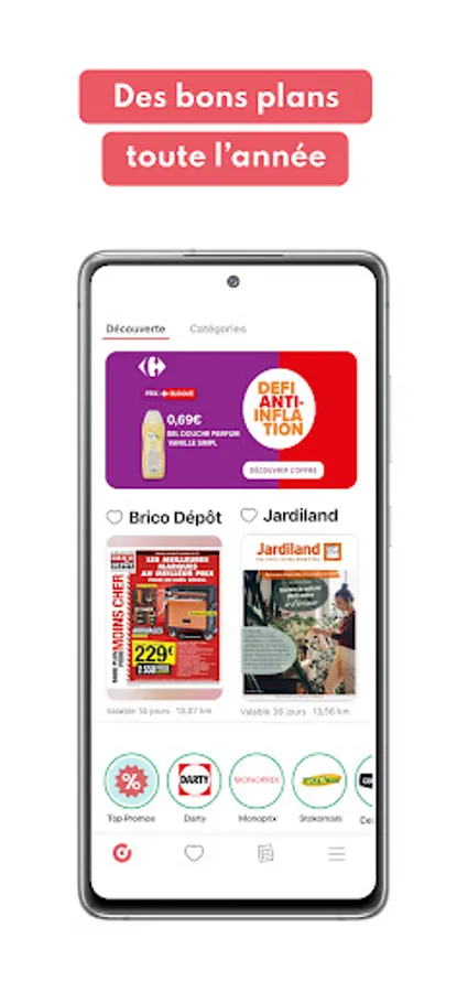 Be the first to know about all the latest ads, deals, and sales near you. Bonial is your all-in-one shopping and coupons app that helps you find all the best deals, weekly ads and in-store promotions in one convenient place. Whether you’re searching for trusted food brands at Carrefour or Intermarché, hot sales from Netto, Aldi or Leader Price, fashionable fabrics at H&M or La Halle, or affordable furnitures from Conforama, Bonial has everything you need. You’ll discover nearby supermarket deals, track the latest offers sales at the stores you love, from the mall to La Foir'Fouille. Making a large purchase? Don’t throw away cash when you can save! Check Bonial for the latest sale on electronics at Fnac, sporting goods at Sport 2000 or Decathlon, or appliances at Darty! Make the most out of shopping by browsing in-store deals on the Bonial app.