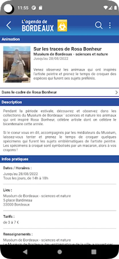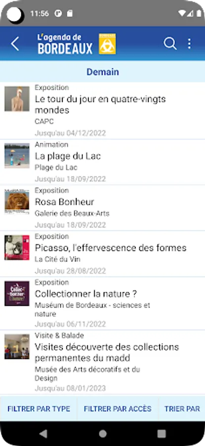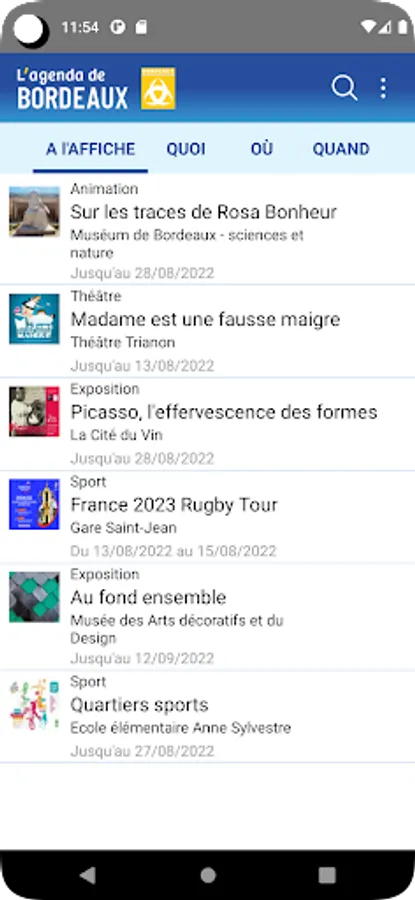 The agenda of Bordeaux, you can find events by time, by location or category to locate on the map, share via email or social networks.