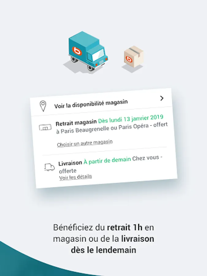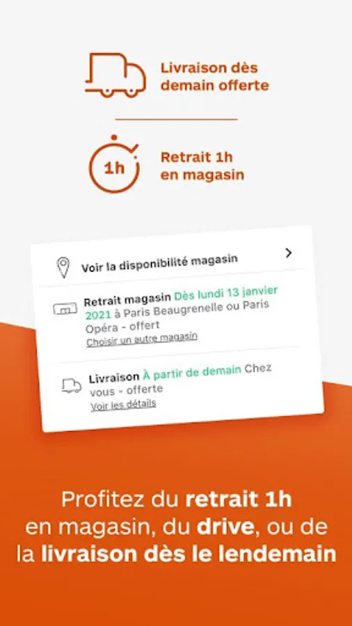 - the possibility of choosing a withdrawal in 1 hour in a store near you (the list of our 180 stores is also available in the app!);