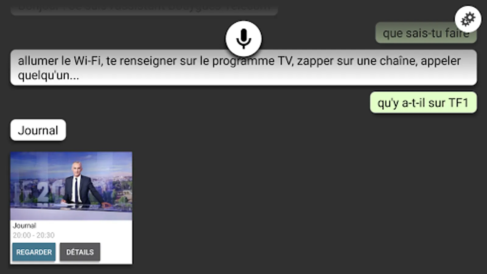 Chat with Bouygues Telecom wizard to zap to a channel, find the Wi-Fi password, check your voice mail ...