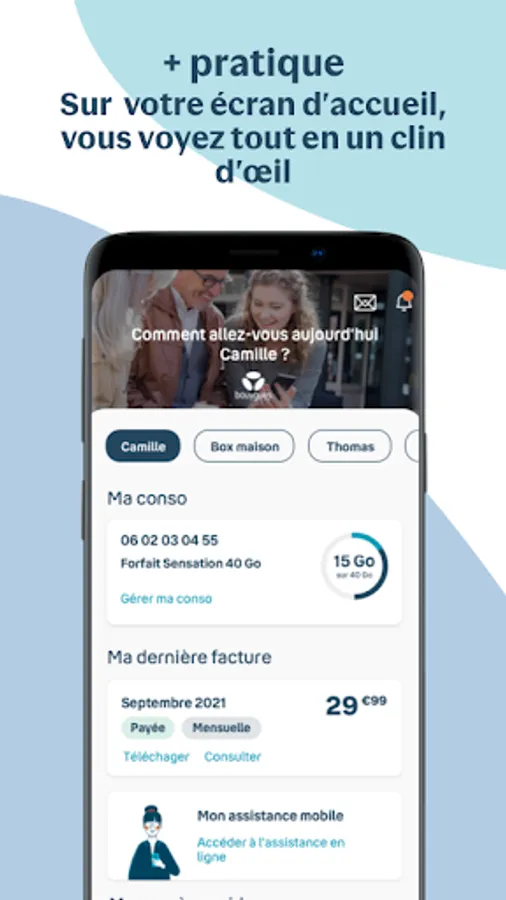 The new Bouygues Telecom application, all-in-one, easy to use and close to you.