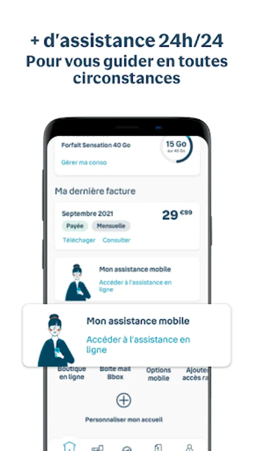 Thanks to the new Bouygues Telecom application, you have direct access to our assistance services and instant messaging. Misplaced phone? Mobile Assistance is there to support you. Need to drive, install or troubleshoot your Bbox? My Bbox Assistant is there to guide you.