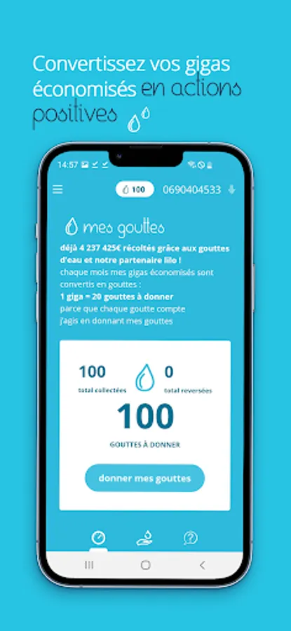 - Collect your drops thanks to your unconsumed gigas. If the entire 40 GB has not been consumed within the month, the remaining GB will be automatically converted into drops 💧