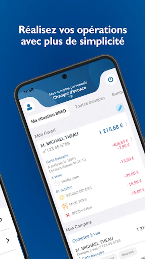 - Account management functionalities (consultation of balances and transactions, transfers, budget management, etc.)