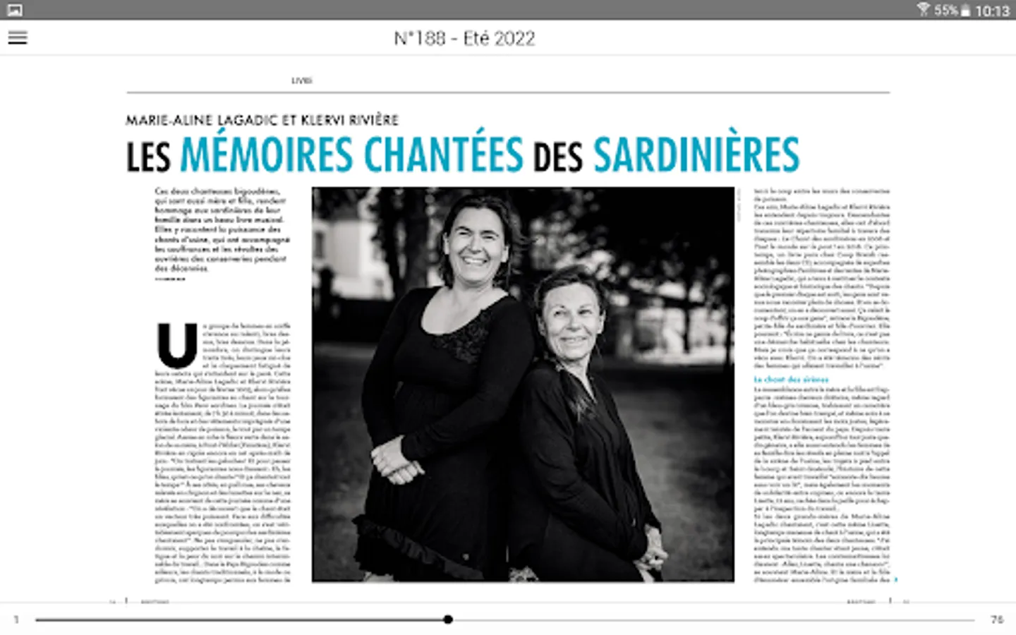 Bretons is a society magazine that covers Breton news and highlights men and women who find themselves at the forefront of the scene in fields as different as literature, politics, cinema, the media or the economy. They bear witness to the astonishing vitality of today's Bretons and to the cultural and economic ferment of the region.