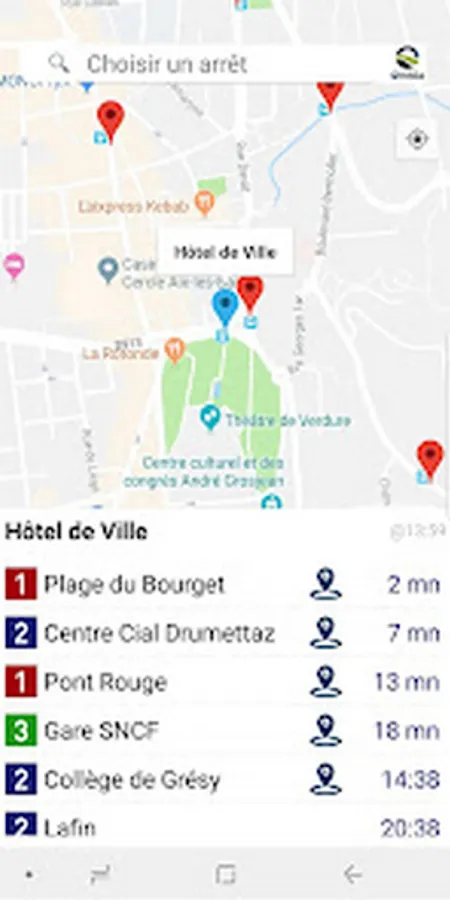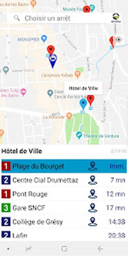 BusInfo.Mobile lets you know the actual waiting time before the next departure from a stop on the Aix-les-Bains network operated by Ondéa. BusInfo.Mobile is the “passenger information terminal in your pocket” while providing more detailed access to the operator’s website.