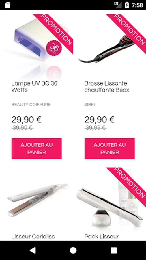 Sale of products and hairdressing equipment and aesthetics for individuals and professionals. Professional hair straightener, flat iron, hair dryer, lawnmower.