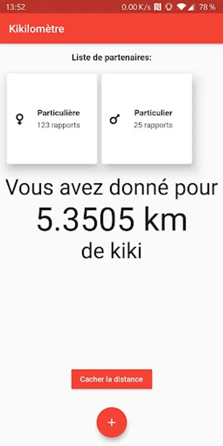Kikilometer allows you to calculate the distance of kiki given or received to your different partners.