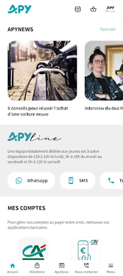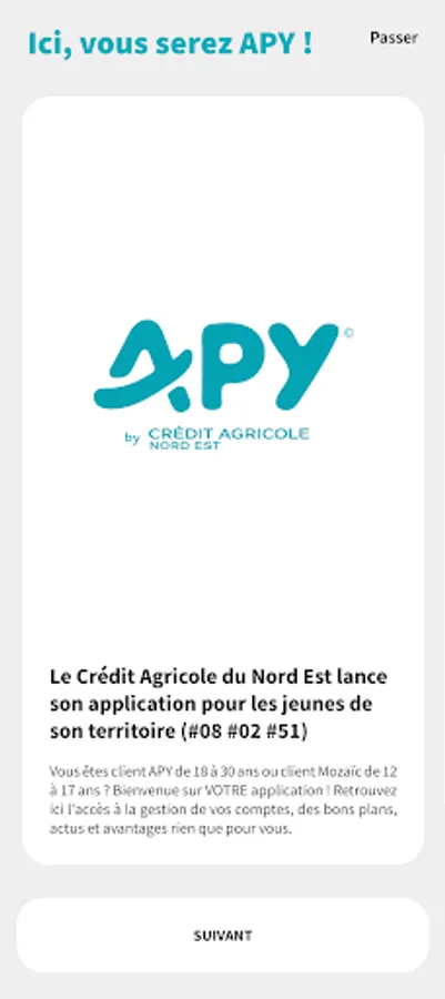 The APY application is intended for Crédit Agricole du Nord Est customers aged 18 to 30. And good news, Mozaïc customers aged 12 to 17 can also access it and find all their Mozaïc advantages.
