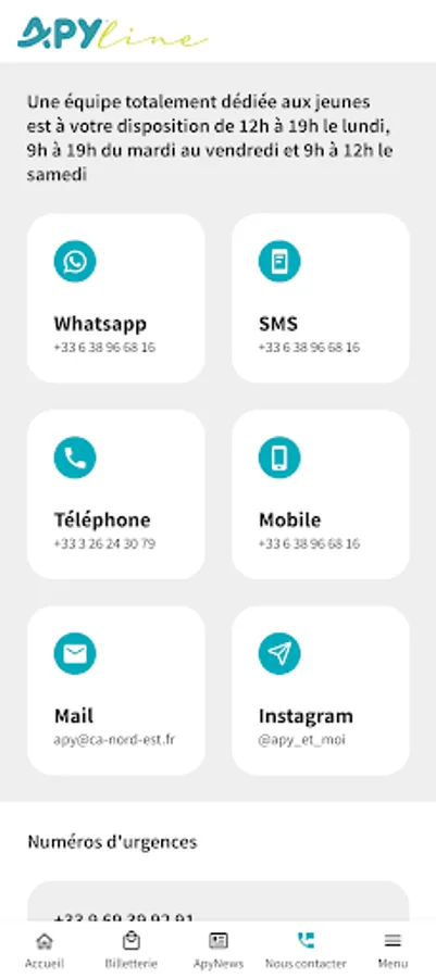 - The APY line: for APY customers aged 18 to 30, find all the means to contact your bank (telephone, SMS, emails, WhatsApp, Instagram).