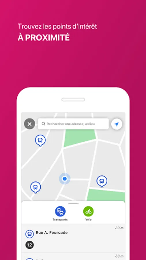 - Geolocation "Around me" to identify the nearest stop