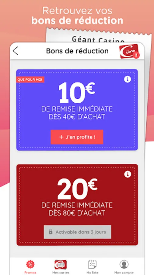 Your Casino loyalty card is integrated into the Casino Max app. At each checkout, accumulate euros in your kitty and check your balance at any time.