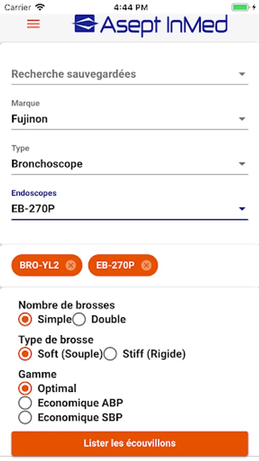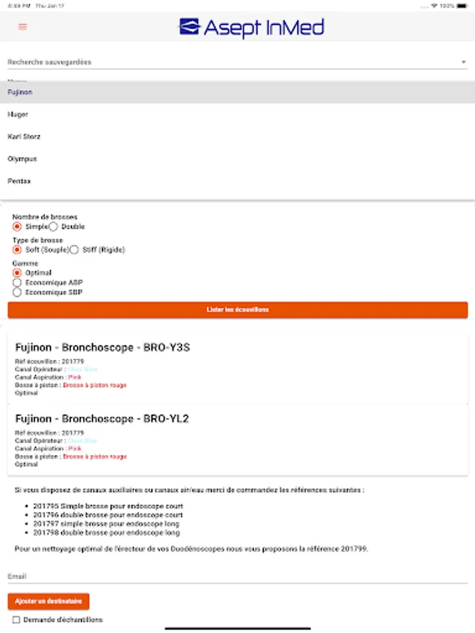Check out the new Asept InMed mobile app: "NeoBrush app". It allows you to quickly find a reference of Asept InMed swabs compatible with your endoscope models. All you have to do is take the references from your endoscope park, fill them in, and the "NeoBrush app" takes care of the rest.