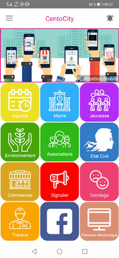 application demo version Mobile CentoCity for local communities. The application provides access to news, events, practical information to answer surveys and report potential problems.