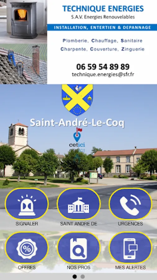 Official application of the town hall of Saint-André-le-Coq in the Puy de Dôme, giving access to citizens and citizens: actors and events that make the communal life of Saint-André-le-Coq. Town hall, school, tourist office, clubs, associations, craftsmen and traders and all citizens exchange information, reports, alerts, events and events of any commercial and non-commercial nature.