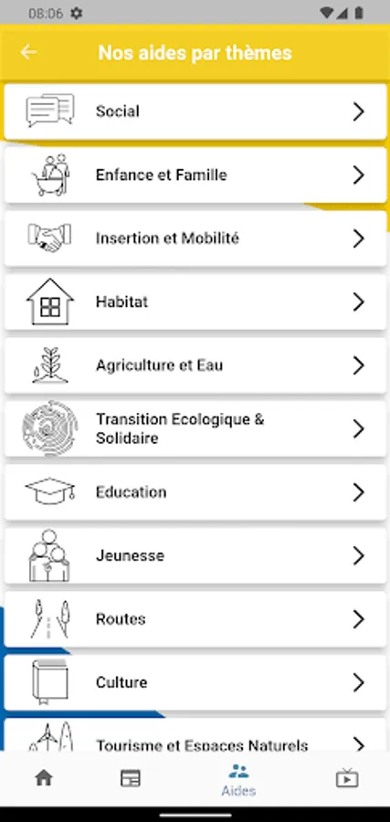 - Aid schemes (for young people, families, seniors, farmers, etc.),