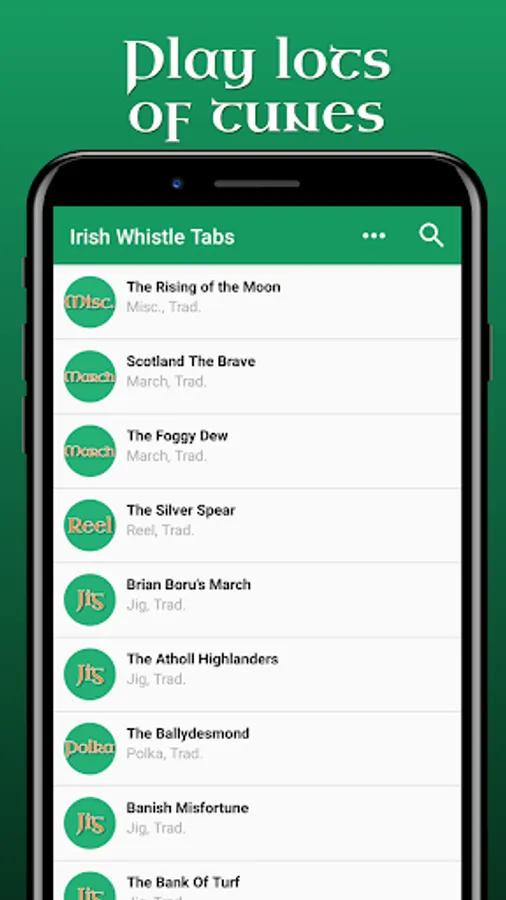 Irish Whistle Tabs is an open-source and ad-free tool to learn and improve your tin whistle skills. It features hundreds of traditional Celtic tunes (jigs, reels, polkas, ballads, etc.).