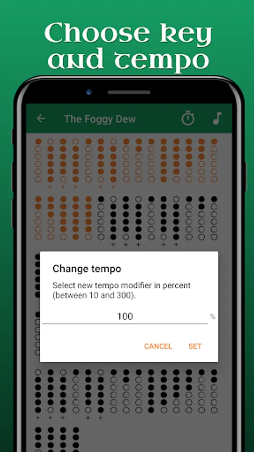 To play along, you can change the whistle key (high D by default) and the tempo. A delay can be added to get time to pick up the whistle.