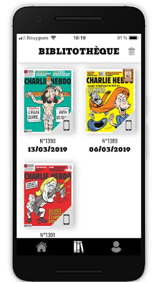 Find Charlie Hebdo in his official app