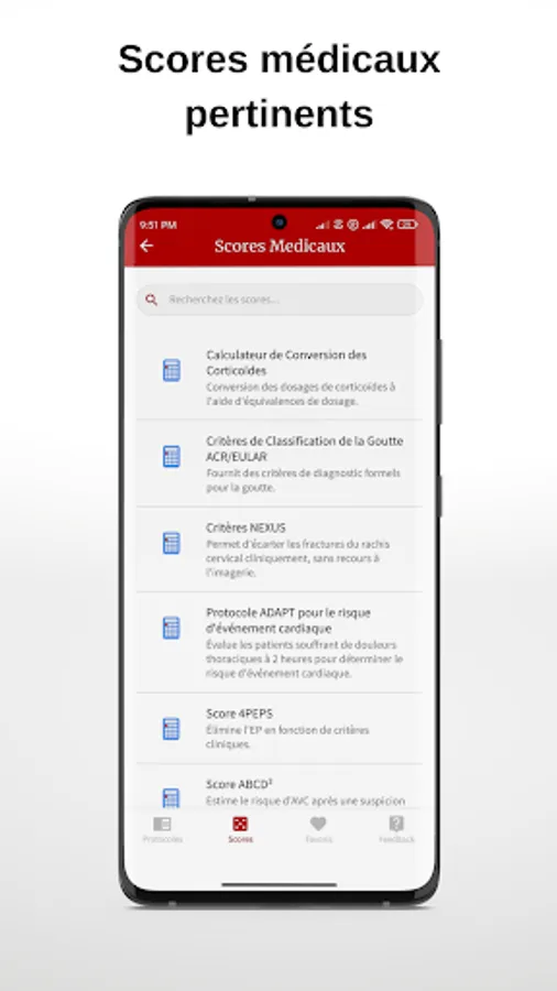The app organizes internal protocols by specialty, in an easy-to-access way. The application is completed by adding the most relevant medical score calculators to facilitate the clinical practice of healthcare professionals.