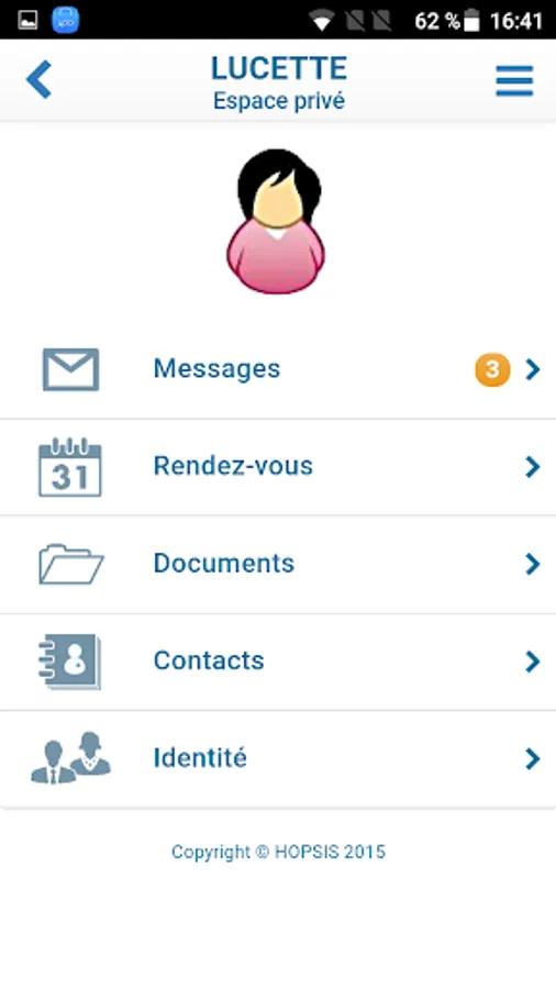 - To consult messages sent by MyCHUGA: if the report received in case of form to be entered in MyCHUGA or appointment to take under its care pathway.