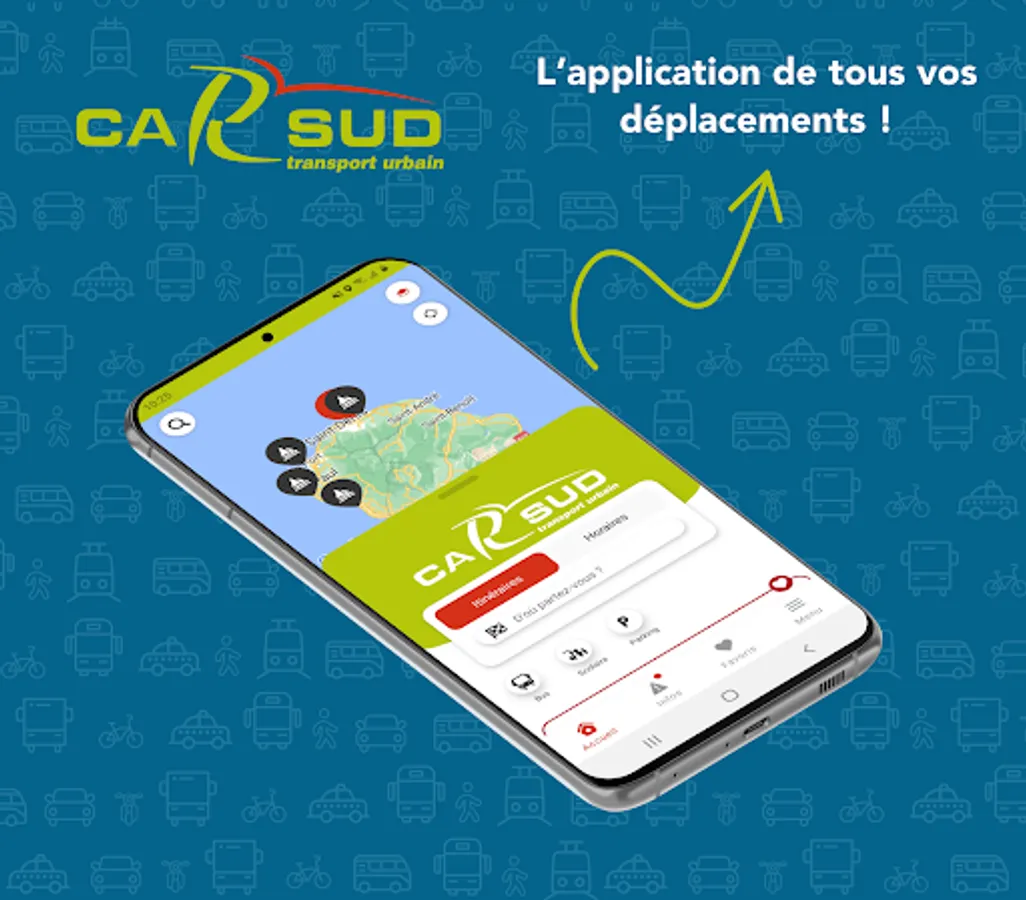 Real-time multimodal route calculator, the CARSUD application makes travel easier by taking into account the different modes of transport and public transport networks on Reunion Island.
