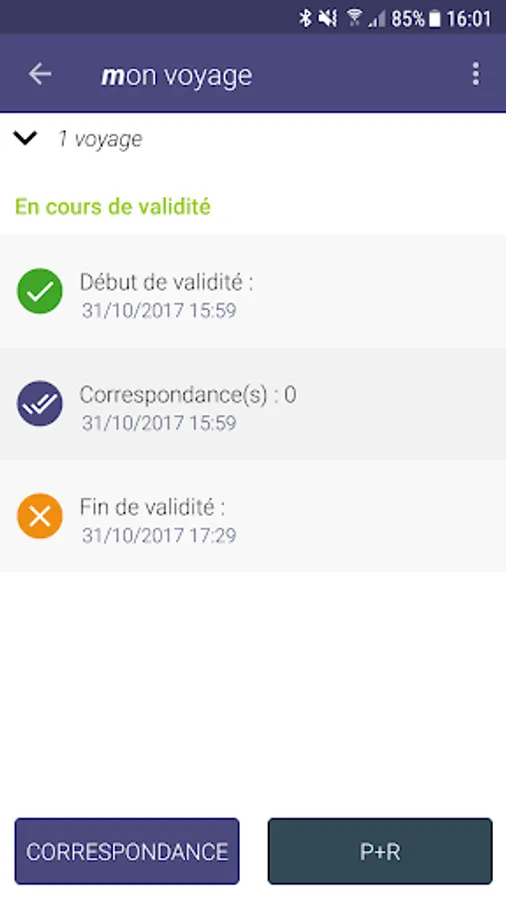A beep confirms the validation and display information about your movement appears on your screen. In case of control, you must simply present your screen to the auditor. You can also access the parking Relais agglomeration presenting the QR code to drive into parking.
