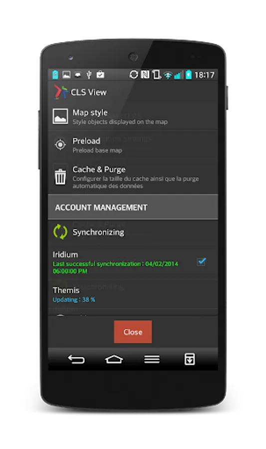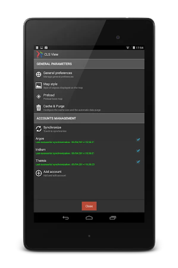 CLS View allows you to view your Argos Web, MyData, Fish Web or Themis Web tracking data on your android device. CLS View provides a user-friendly atmosphere for maritime and terrestrial applications, by displaying maritime mobile positions on detailed marine charts or terrestrial mobile positions on openStreetMap and /or satellite maps. In addition, CLS View can display any WMS or TMS map layer.