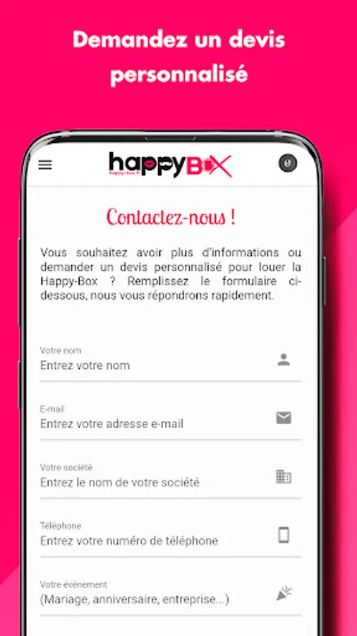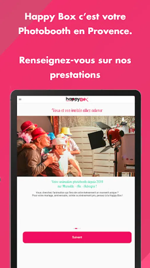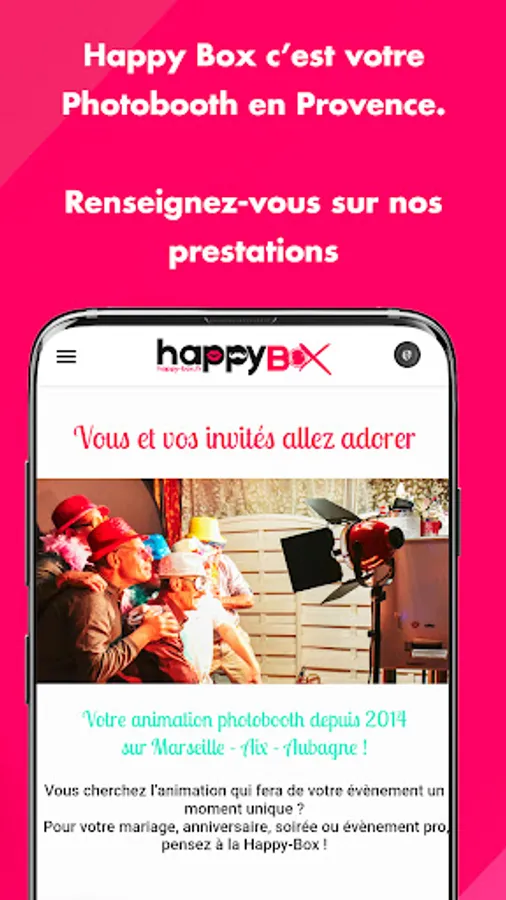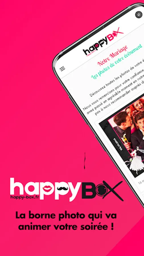 With Happy-Box, press, put, it's printed. The Happy-Box application allows you to consult the photos of your evening and to be able to share them with friends or family.