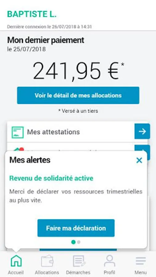 * Answer the Caf's questions in the My steps section and send the necessary documents directly from your smartphone