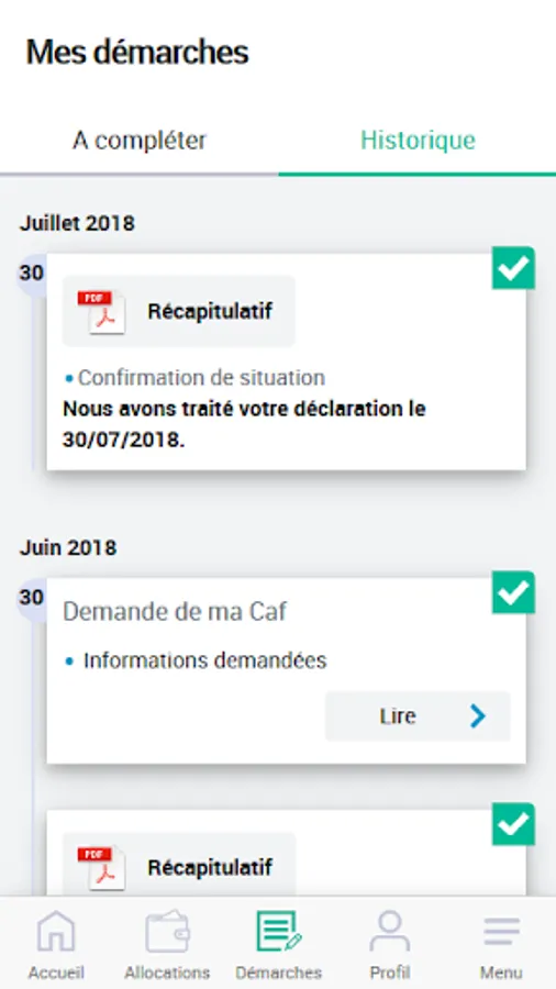 * Follow the progress of your steps taken on caf.fr and be informed at each connection or via push notifications in case of missing elements
