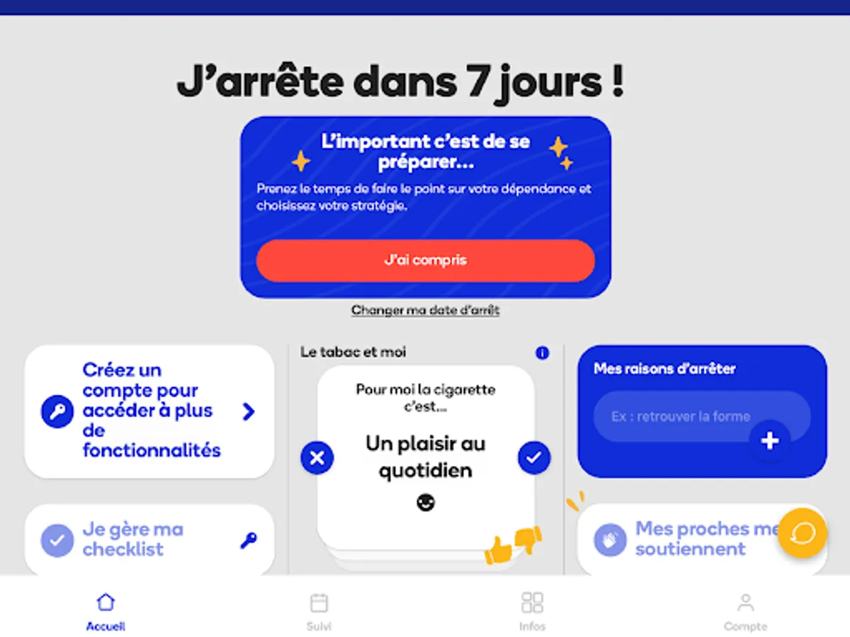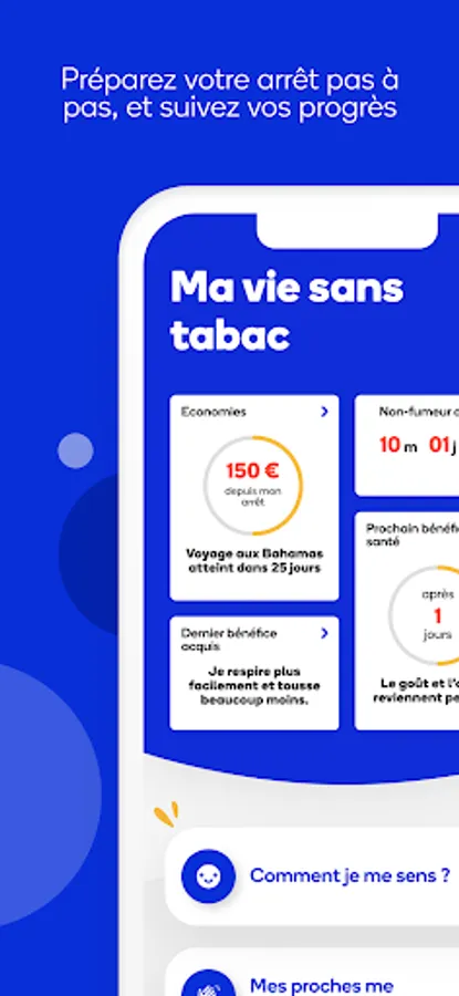Do you want to quit smoking or have just relapsed? This new generation free app is for you! Download it quickly, it provides you with 100% personalized support, turns your loved ones into supporters, calls a tobacco specialist if necessary and offers you plenty of content so you don't crack!
