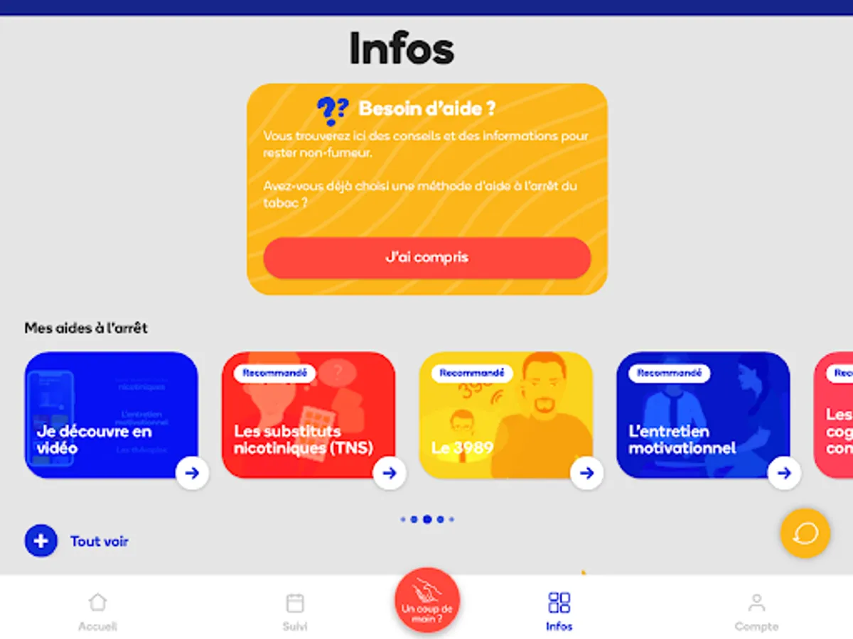 The Tobacco info service coaching is a smoking cessation aid from the French Ministry of Health and Prevention, Health Insurance and Public Health.