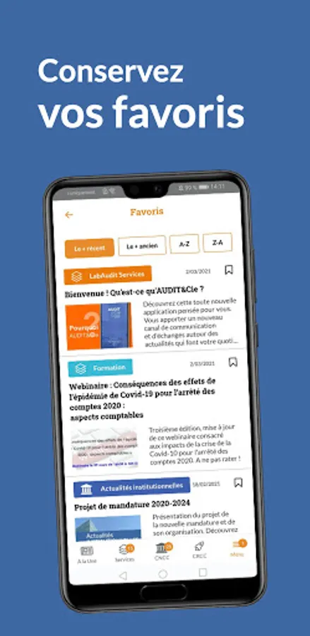 Designed for audit professionals, the AUDIT & Cie app offers privileged access to audit news published by the CNCC and the CRCCs.