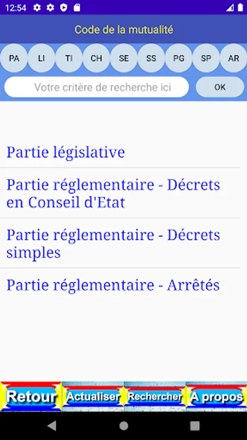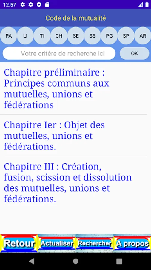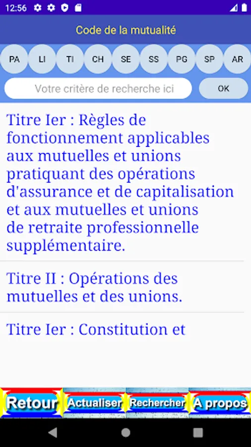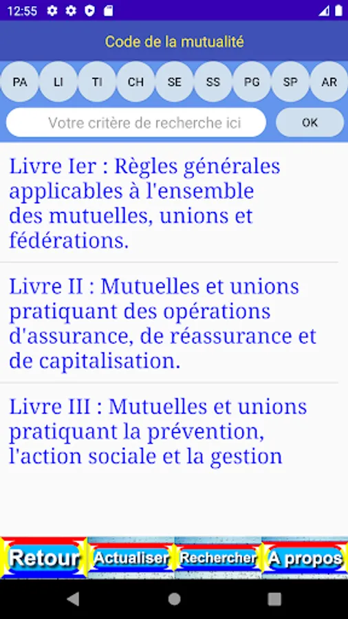 The criterion entered is easily found in the different levels (book (LI), part (PA), title (TI), chapter (CH), section (SE), paragraph (PG), point (PO), article (AR) and content (OK)) of the publication.