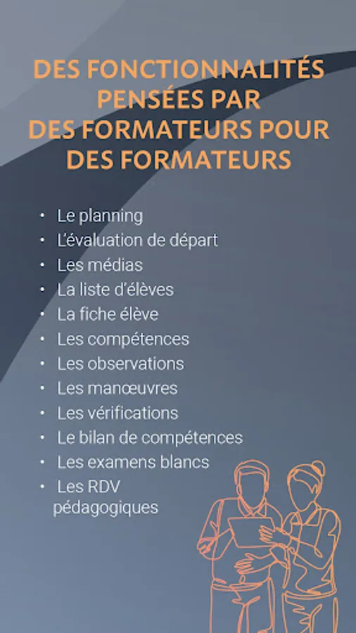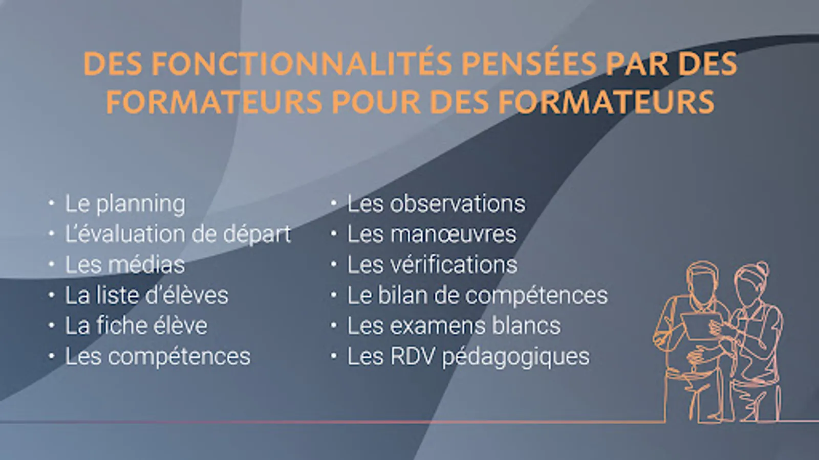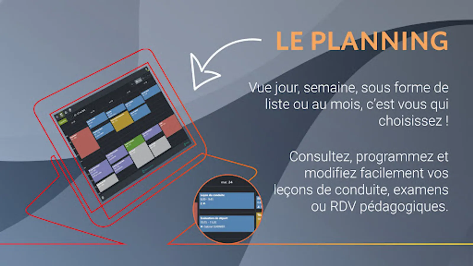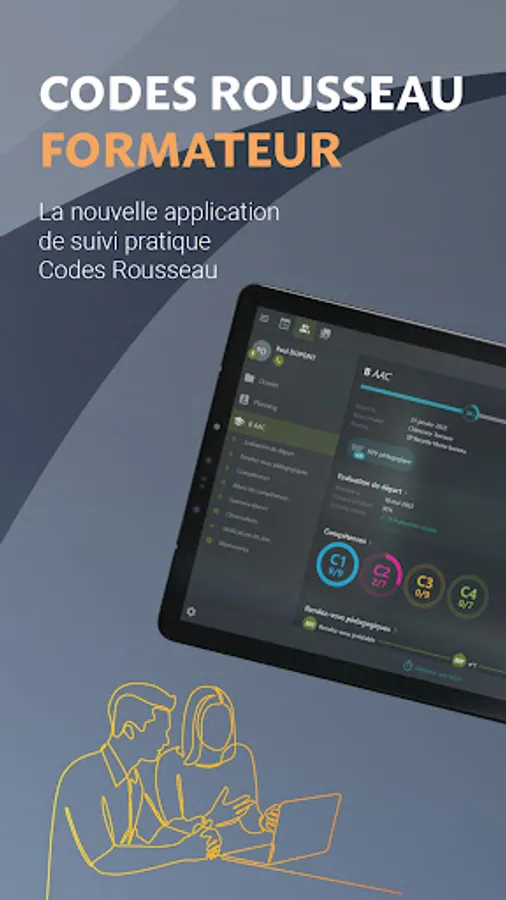 Codes Rousseau Trainer is the new application of Codes Rousseau. Intended for trainers from partner driving schools, our application aims to make their daily life easier thanks to a personalized and intuitive schedule. It also participates in supporting students in driving training and learning through media support, comprehension aids and a set of digital features such as the initial assessment, the monitoring of sub-skills to acquire, mock exams etc, all on a tablet!