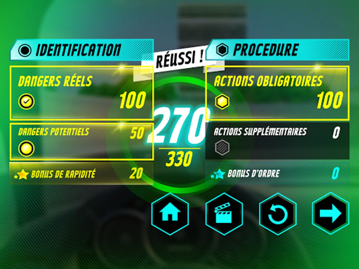 - Select a theme among the 11 available (traffic signs, other users, rules of priorities ...)
