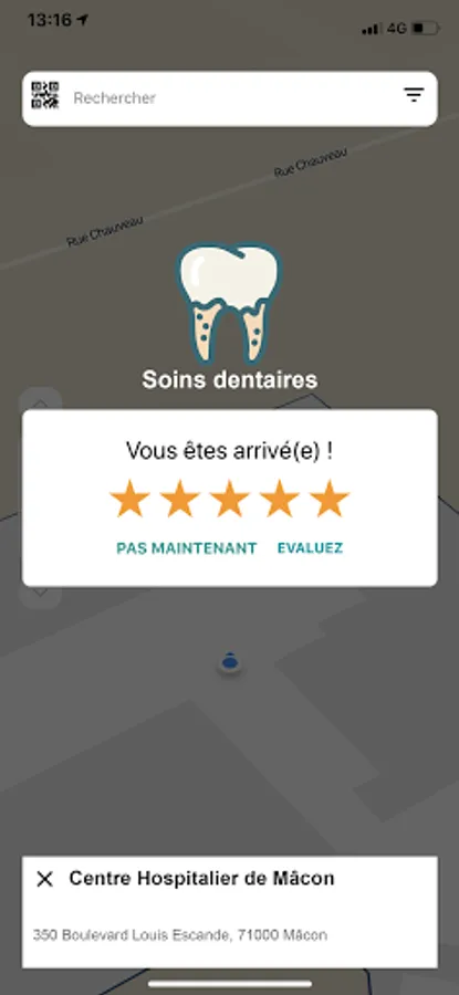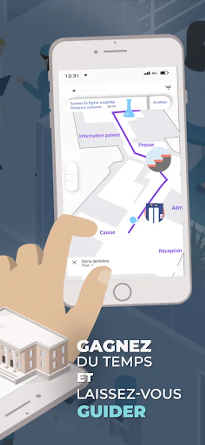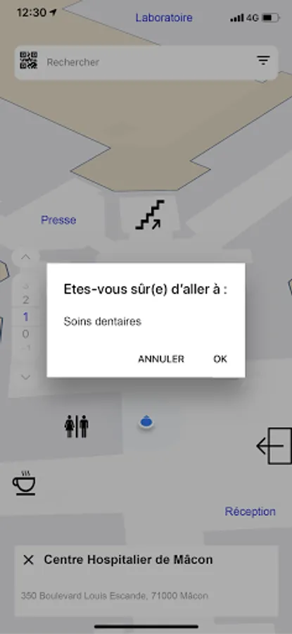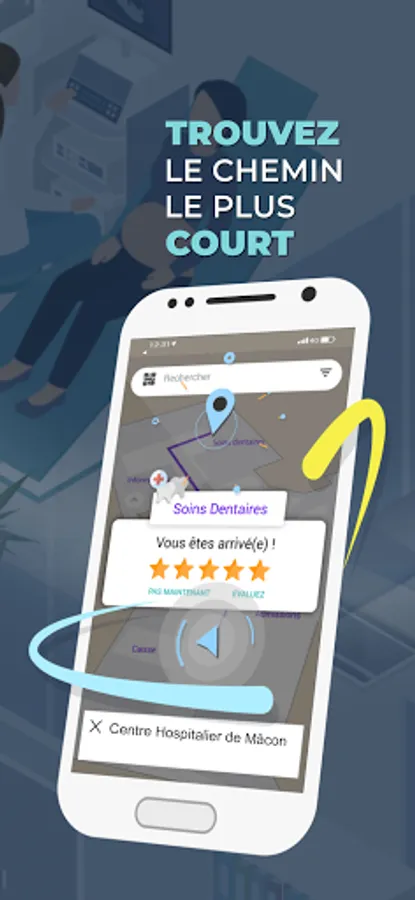 A date scheduled? Are you coming to visit a patient? Once the application is installed, you will be guided precisely within the CH Mâcon. All you have to do is enter your meeting place or search for a point of interest, and the app will guide you efficiently inside the hospital to your destination.