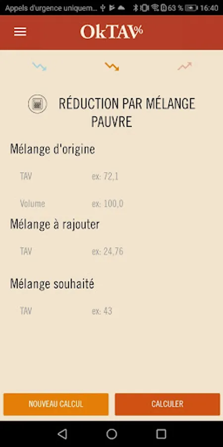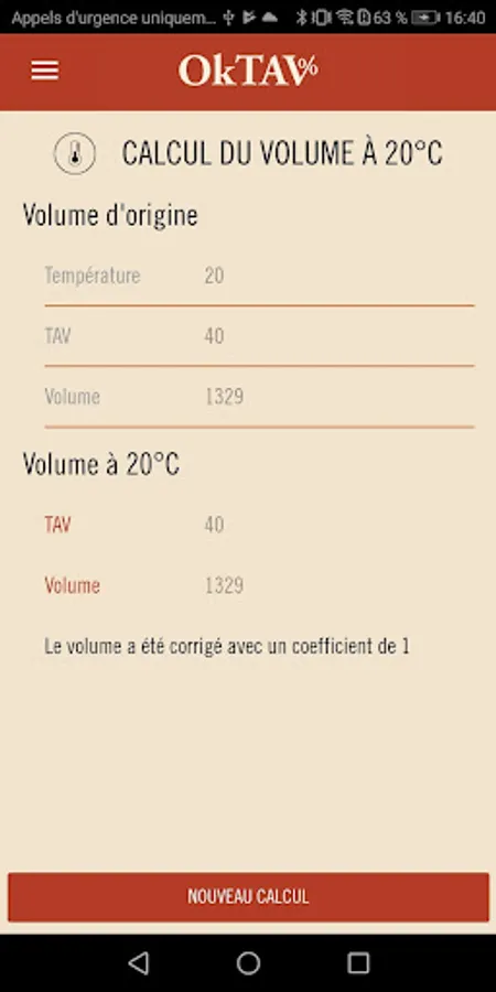 OkTAV is an application in the form of a calculator, allowing the calculation of volumes and TAV of hydro-alcoholic mixtures, and whose use is intended for citizens of the Cognac sector.