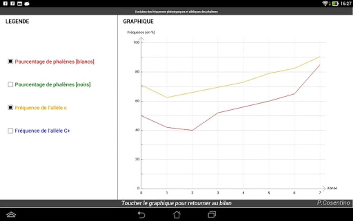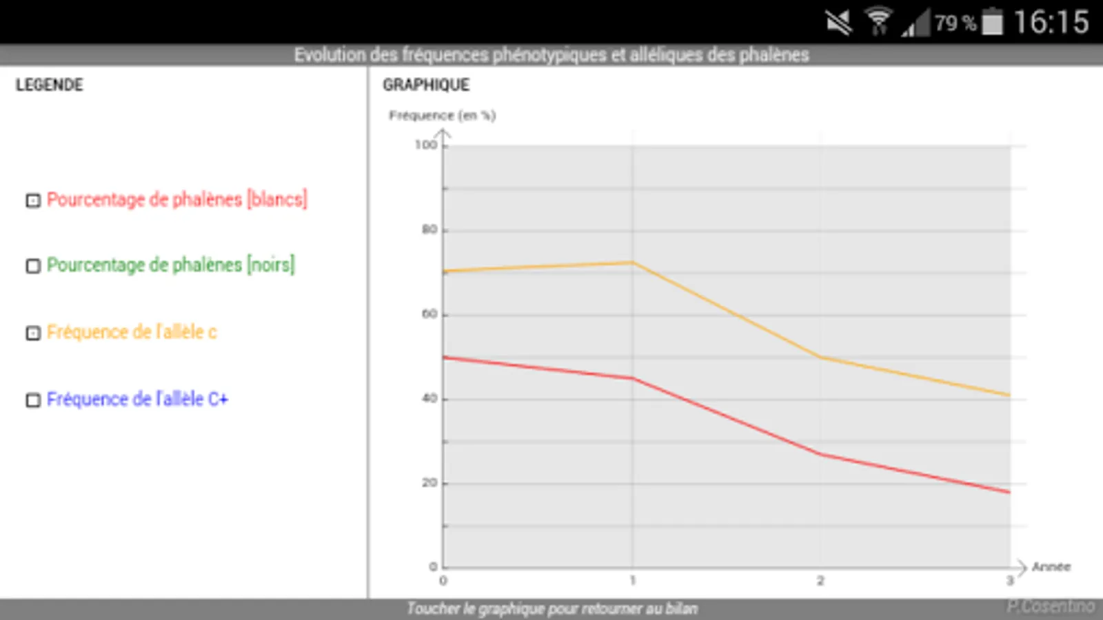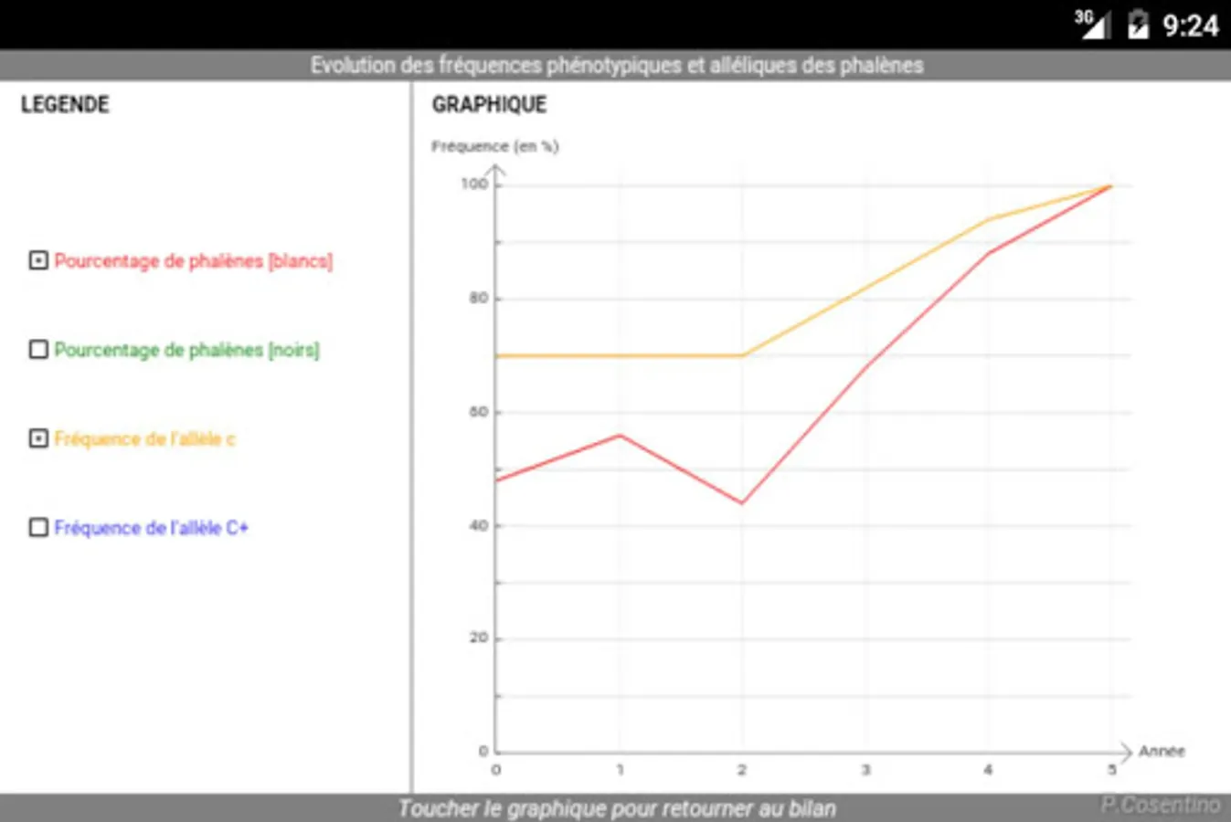 A form of display graphics will allow you to monitor changes in phenotypes (color) over time, but also of alleles (versions of genes).