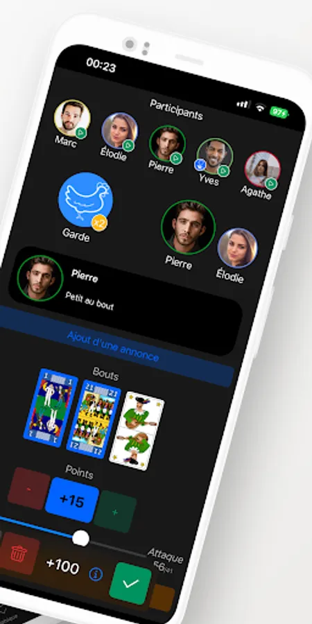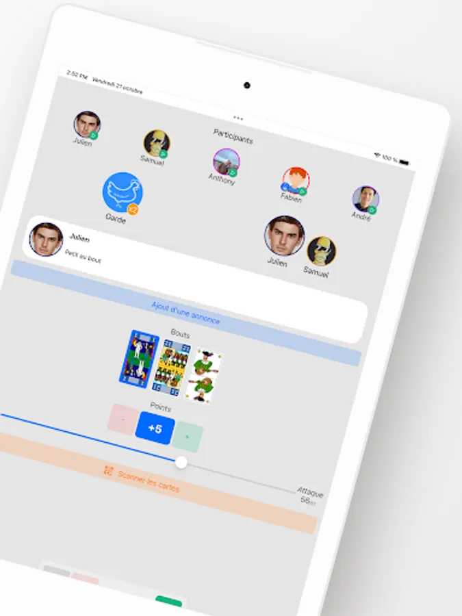 Tarometer is an application which allows you to count Tarot points and which stores all your players and your online games in real time.