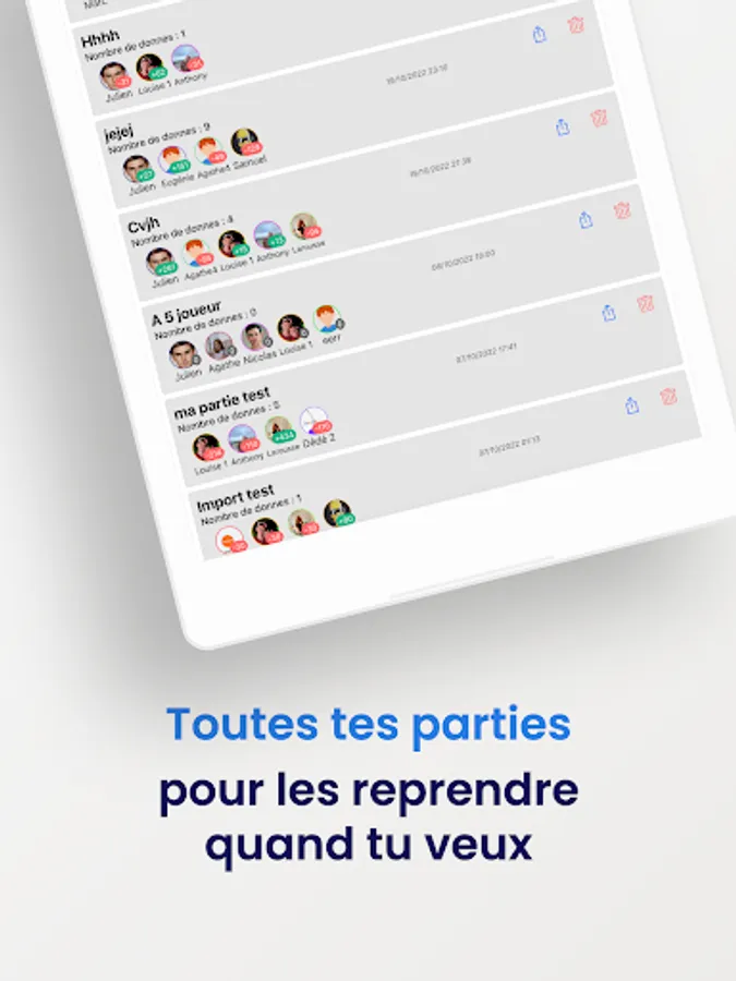 Thanks to this, you will be able to find your scores on the website or on another device. Even more, you can be several to count the points, the scores will then be updated in real time on all devices.