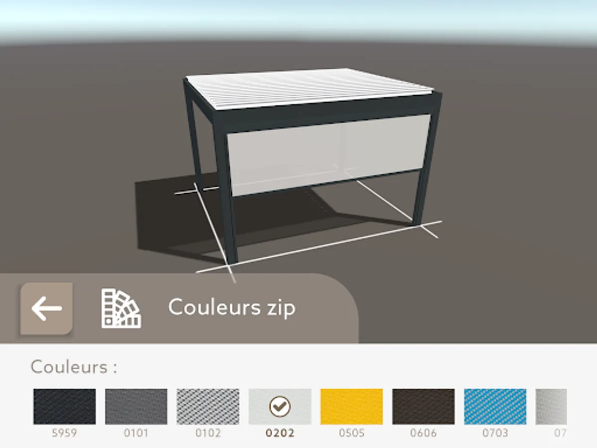 A version for professionals is available and allows you to model the installation of the pergola in the smallest details by controlling, for example, the height of the posts or those of the slides of the zip blinds.