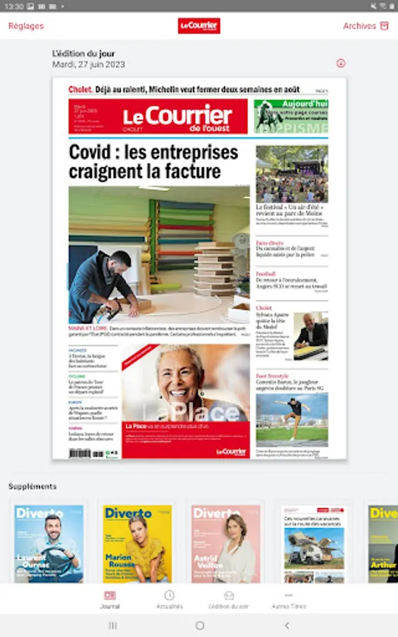 With the Le Courrier de l'Ouest - Le Journal application, find your digital edition of Le Courrier de l'Ouest newspaper from Monday to Sunday, to leaf through on your smartphone or tablet.