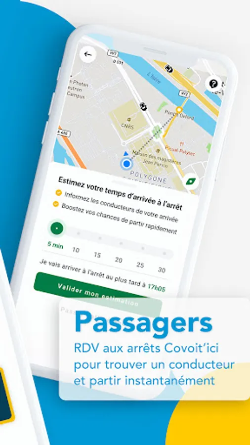 ⚡ No need for a reservation: go to the nearest Covoit'ici stop, fill in your destination in the application, or by SMS, wait at the stop. A few minutes later, a driver stops to take you to your destination stop.