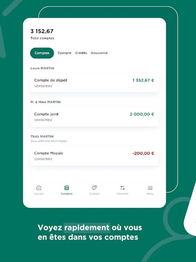 - Recevoir des notifications pour vous tenir informé des opérations importantes sur vos comptes