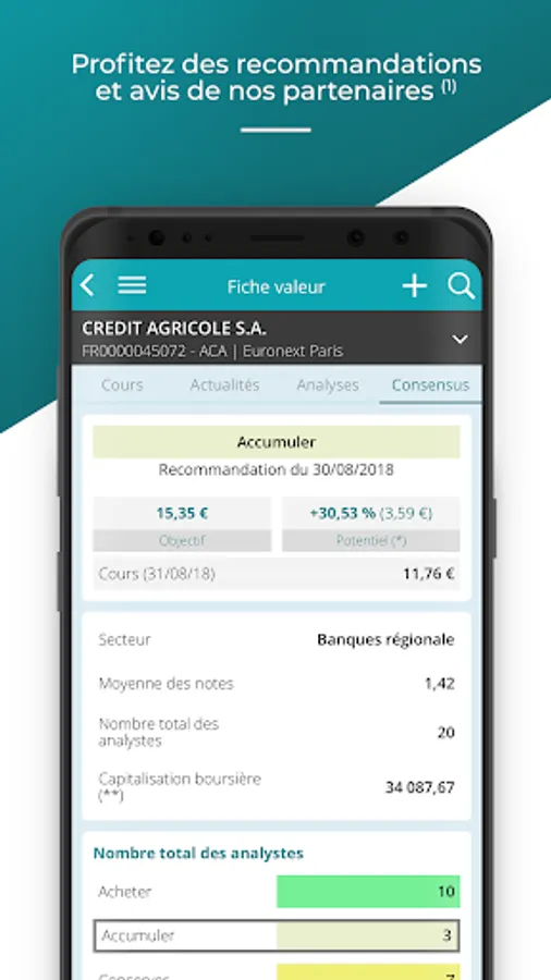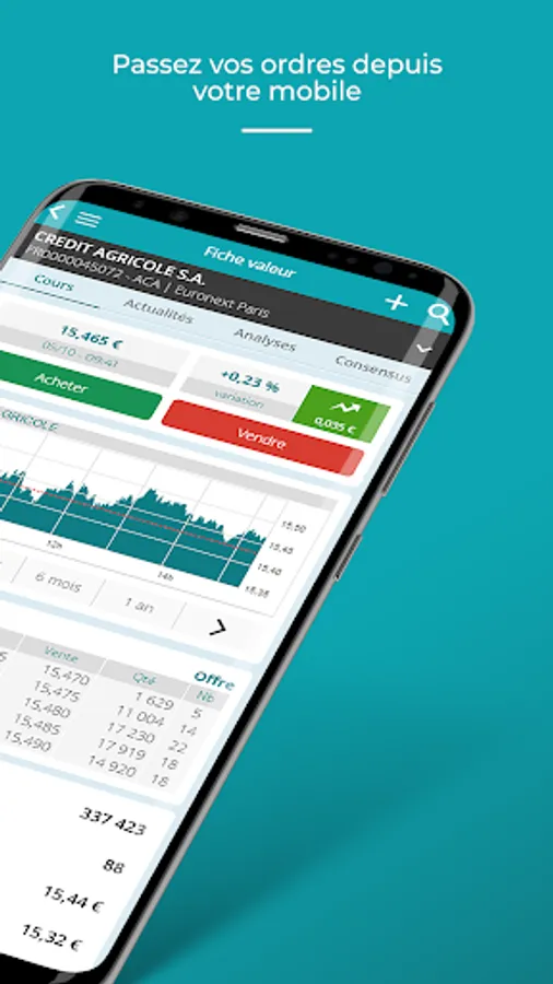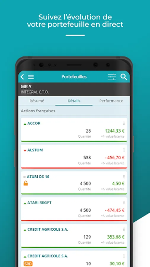 The CA Bourse app from Crédit Agricole allows you to track your portfolios freely!