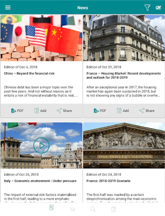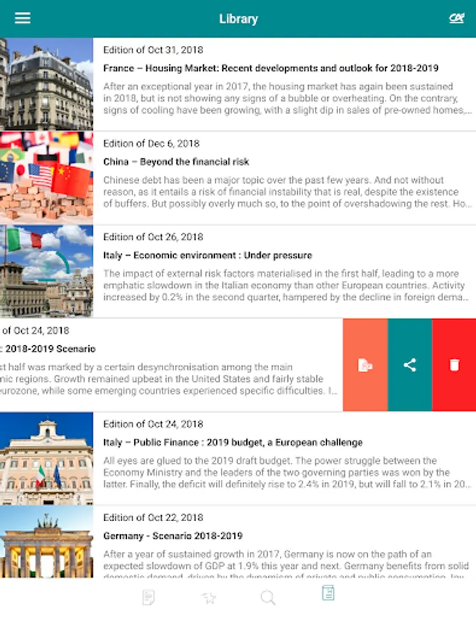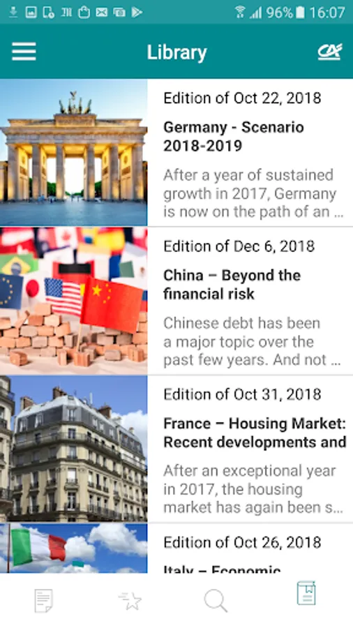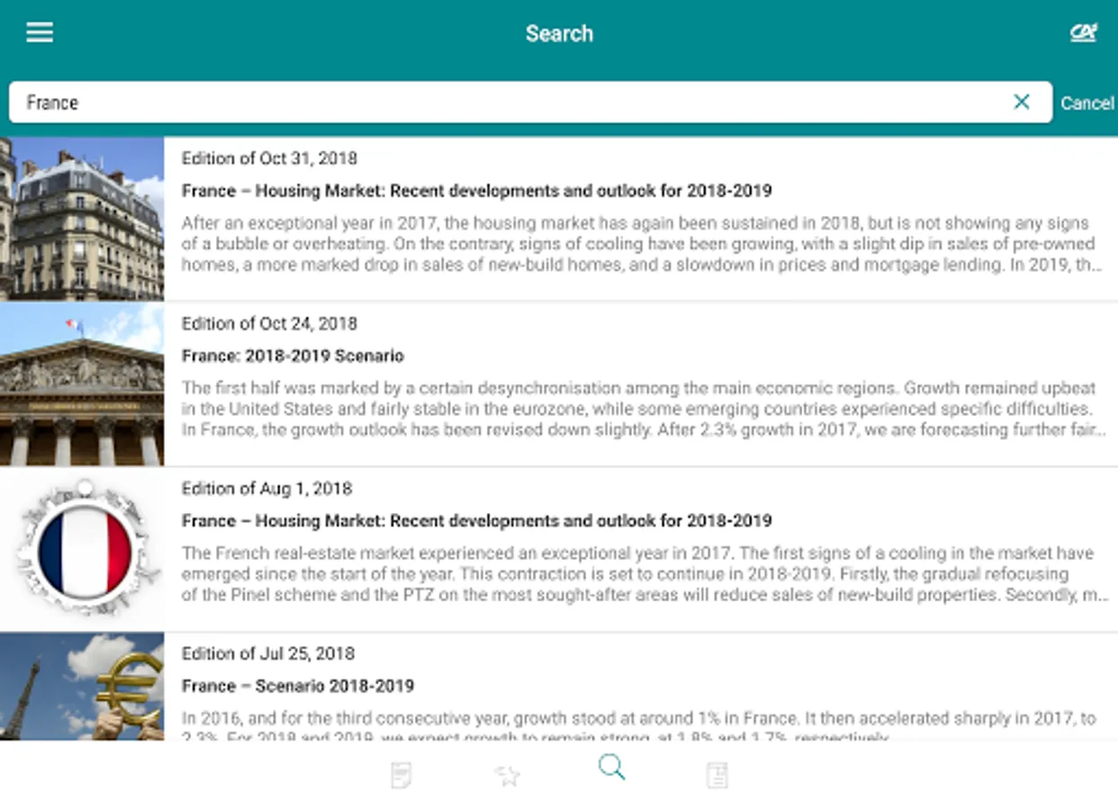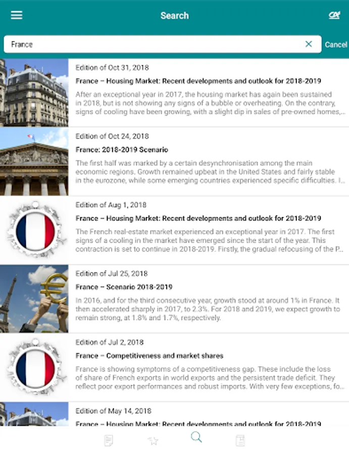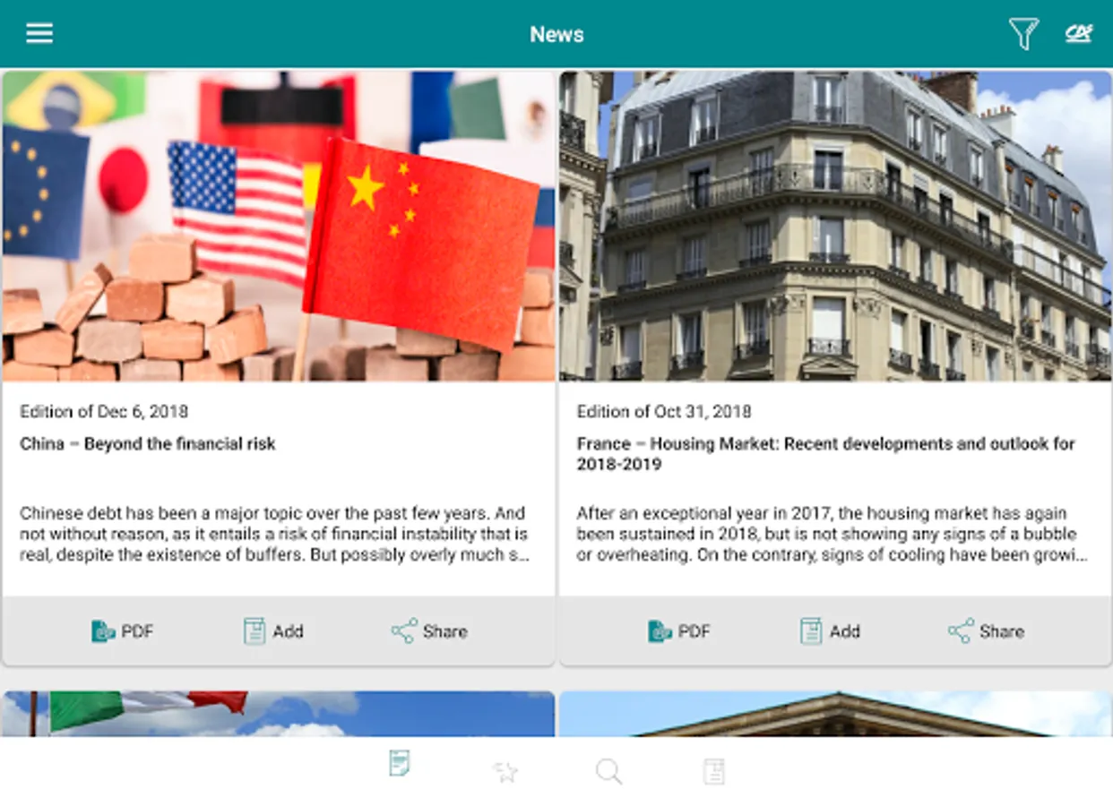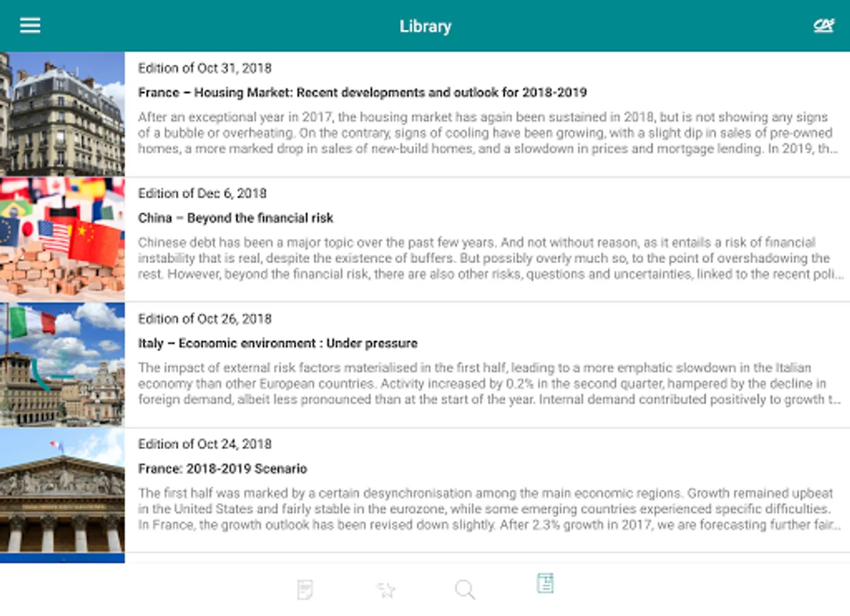 The Etudes Eco App is free to download from the App Store and Google Play, giving you access to the very latest analyses of Crédit Agricole S.A. economists.